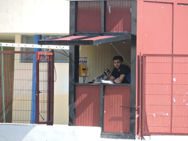 Cambié mi posición de narrador de la antigua cabina de Radio MCM a las nuevas gradas del Carlos Marchena puesto que al no haber público en ellas iba a poder tener mejor visión del partido, además de más información de los banquillos puesto que se encuentra justo detrás de los mismos. Las razones por las que no me solía sentar allí durante los partidos son varias. En primer lugar el ruido que entra en los micrófonos es muchísimo más que al estar en una cabina semi cerrada, también no tener un lugar donde apoyar mis ‘bártulos’ (tablet, hojas de apuntes, alineación, libretas, etc) es un handicap a tener muy en cuenta, y por último la incomodidad de sentirse observado.